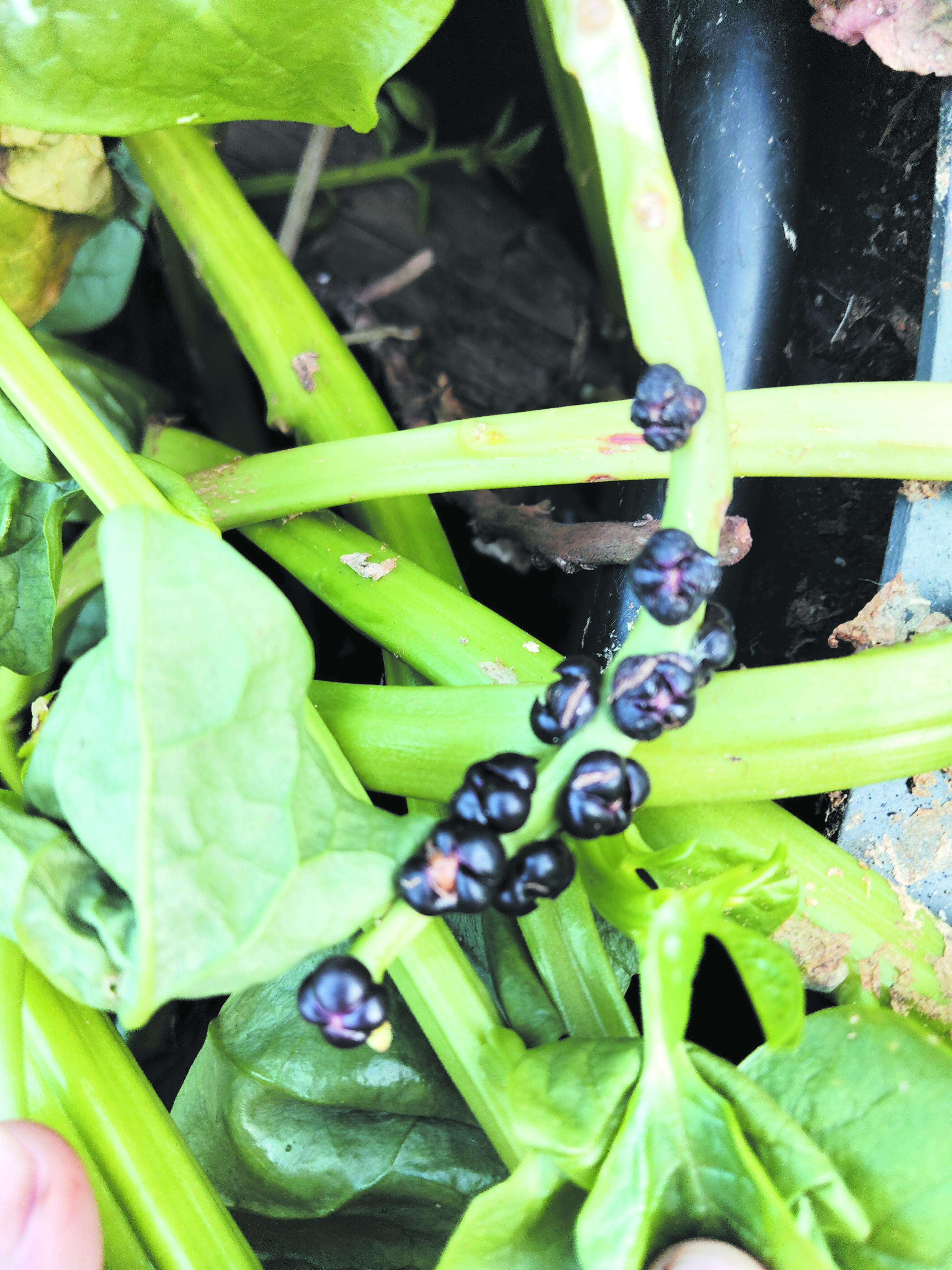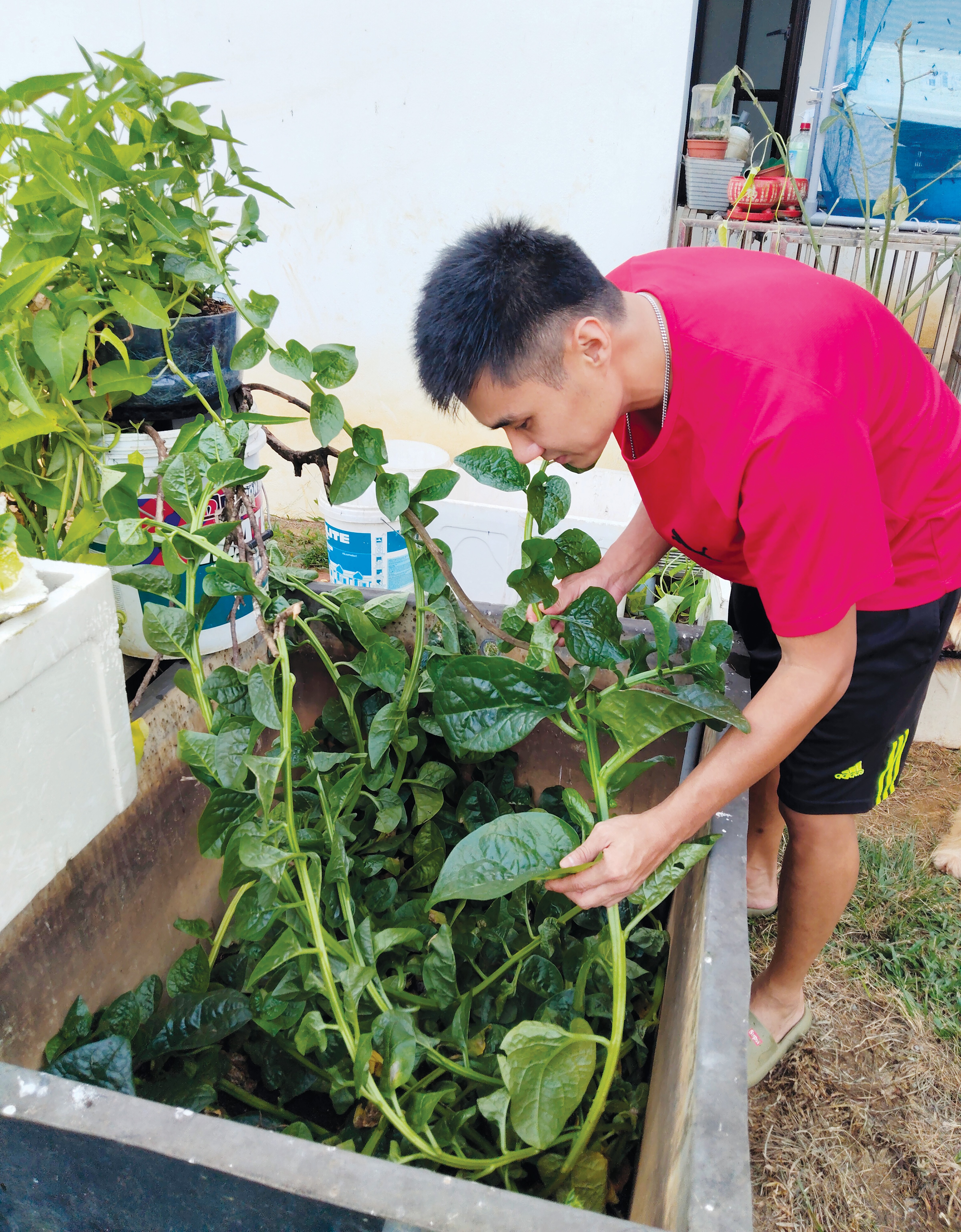Bayam Malabar tumbuh melata dengan subur. Lim Dao Qin melakukan pemangkasan dengan teliti bagi mengekalkan keindahan pokok serta pertumbuhan yang seimbang.