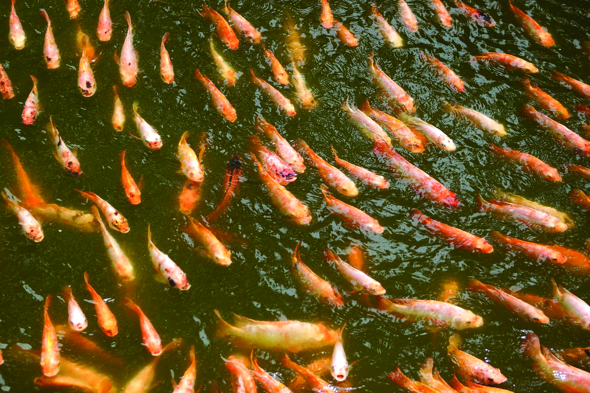 Selain itu, buih di sudut kolam yang berwarna kekuningan, bahan terapung yang menjadi kehitaman serta warna air yang berlapis dan tidak sekata berpunca daripada penguraian bahan organik yang tidak sempurna dalam keadaan kekurangan oksigen, lalu menghasilkan sejumlah besar serpihan terampai.