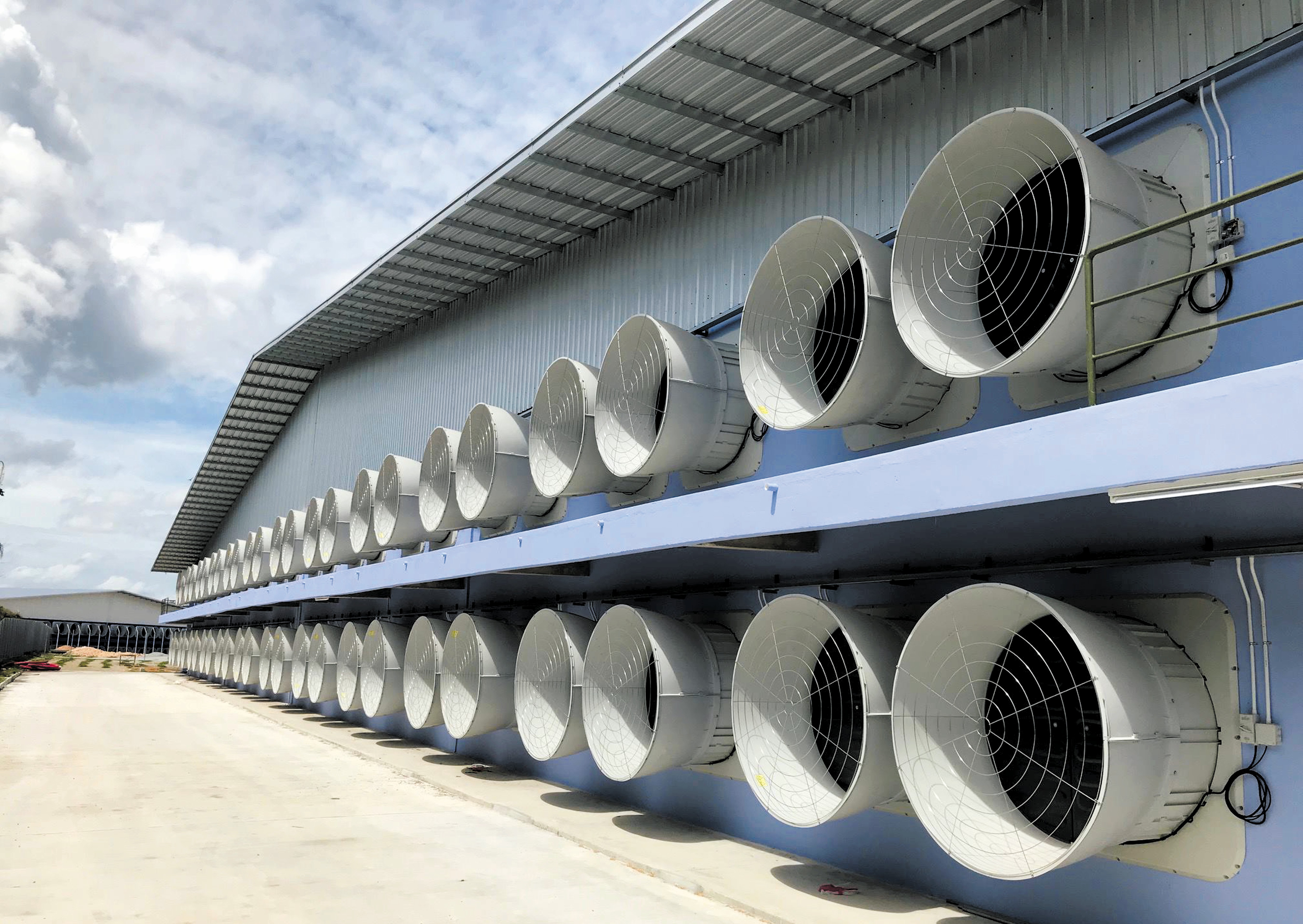 Syarikat Meng Kee Poultry (M) Sdn Bhd memasang sistem pengudaraan terowong di rumah ayam, menggunakan 56 unit lipas untuk memastikan pengaliran udara dan kawalan persekitaran yang baik. (Gambar: Facebook syarikat Denmark SKOV)