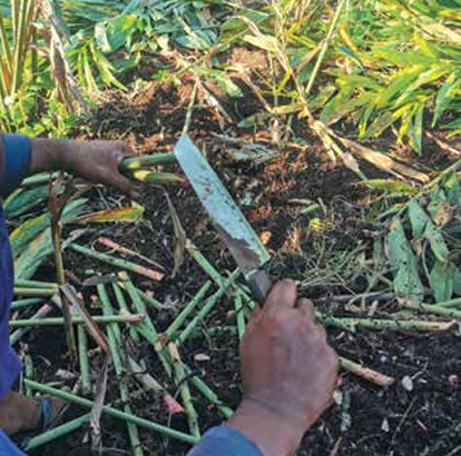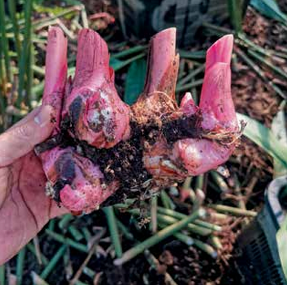 Harga benih lengkuas kira-kira 30%-50% lebih mahal berbanding halia biasa. Gambar menunjukkan Ang Yi Sheng memilih rizom lengkuas yang sihat untuk dijadikan benih.