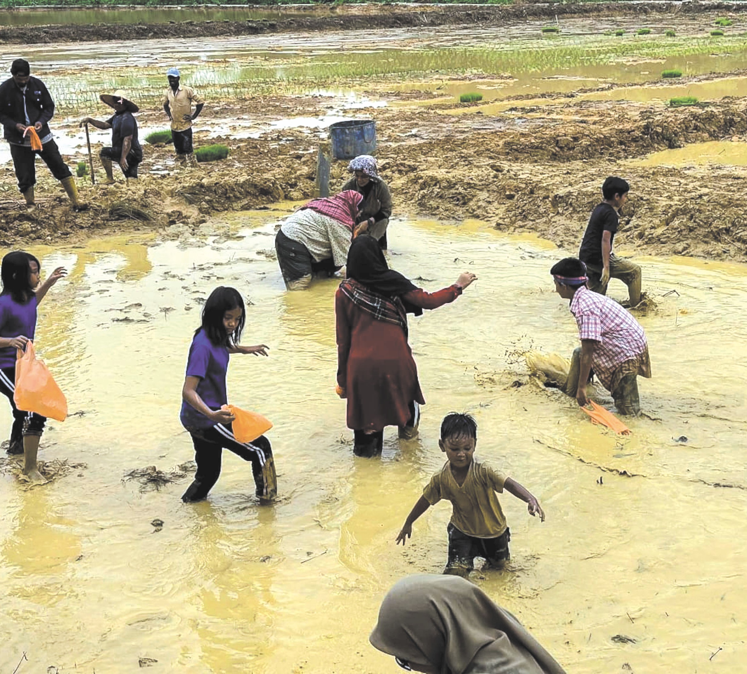 Pengunjung dan penduduk kampung berpeluang mengimbas kembali kenangan menanam padi secara tradisional.