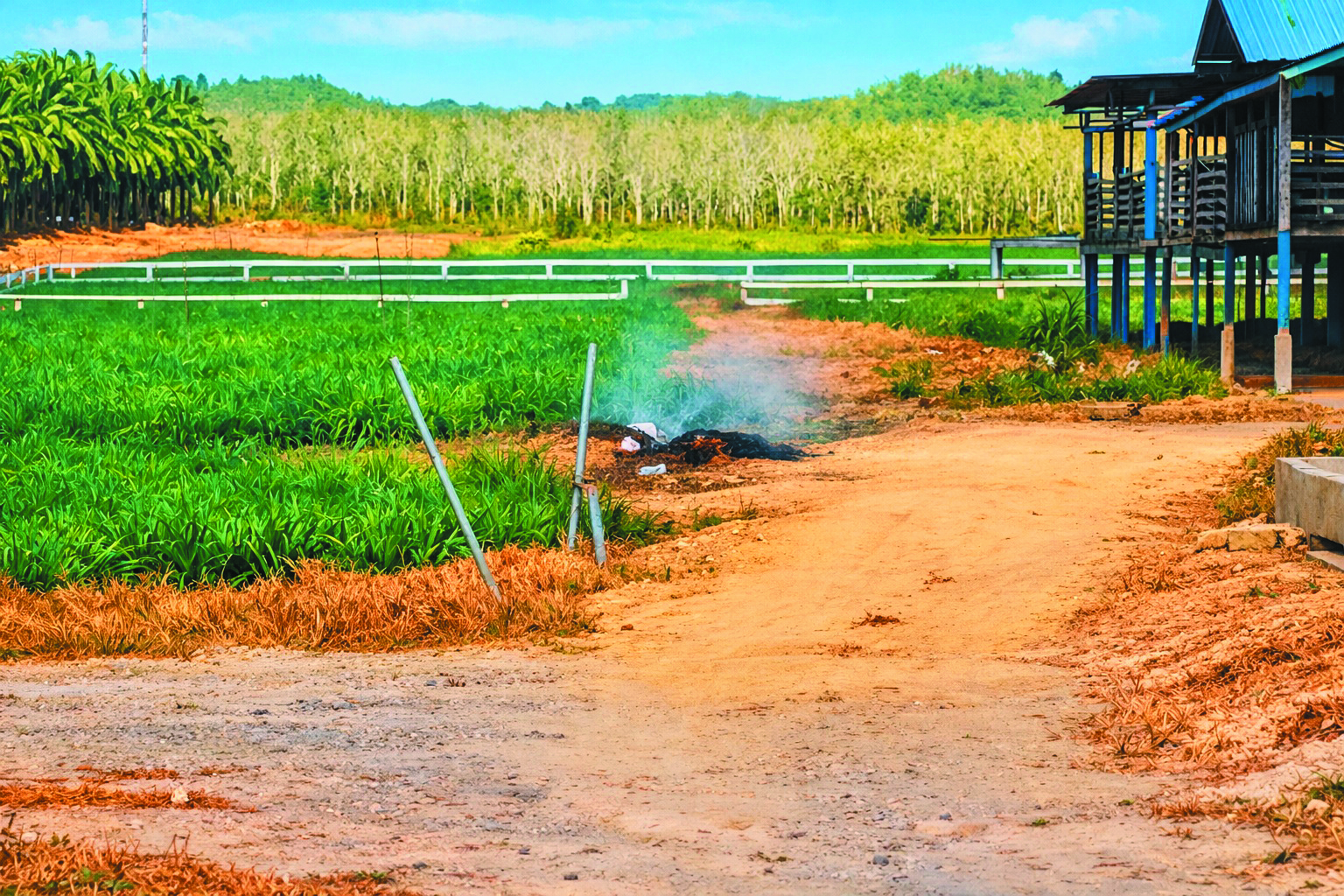 Rumput Napier ditanam menggunakan baja dari tinja lembu.