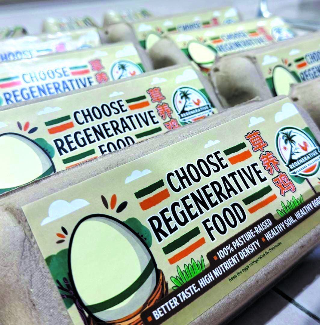 Regenerative Farmers Malaysia adalah sebuah pertubuhan yang menggunakan kaedah ‘chicken tractor’ – sangkar mudah alih yang kerap dipindahkan. Setiap kali ayam berpindah, mereka tinggalkan ‘hadiah’: najis sebagai baja semula jadi. Rumput diberi masa pulih, tanah disuburkan secara organik, dan kitaran kehidupan berterusan.