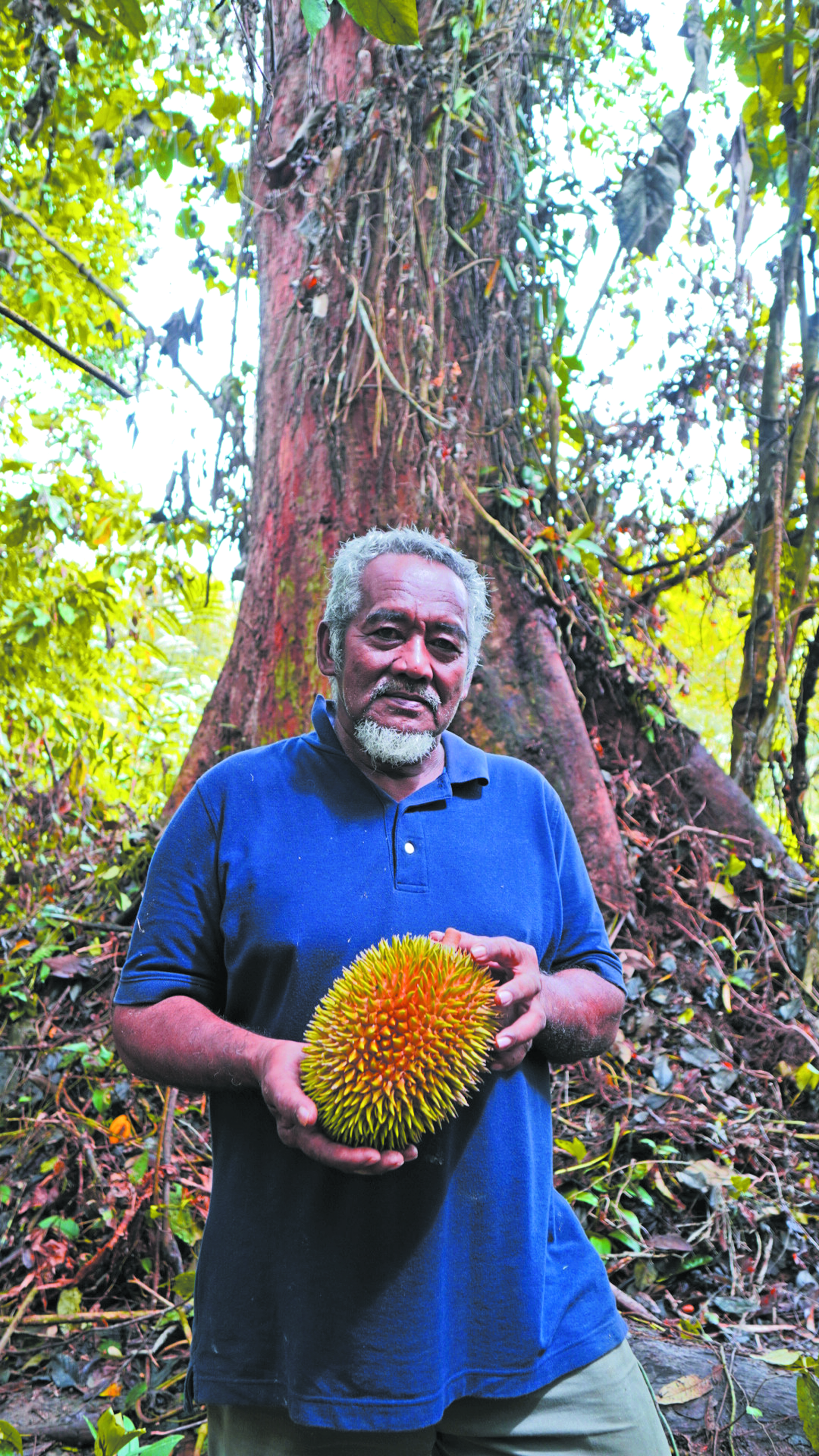 Encik Ahmad Mamat meluahkan rasa kagum: “Di seluruh Pahang, pelbagai varieti unik dapat ditemui. Malah kami pernah melihat ‘Durian Kura-kura’ berwarna ungu kehitaman yang tumbuh terus pada batang pokok. Namun, varieti yang dilihat hari ini, dengan keunikan warnanya, memang tidak pernah kami temui sebelum ini. ”