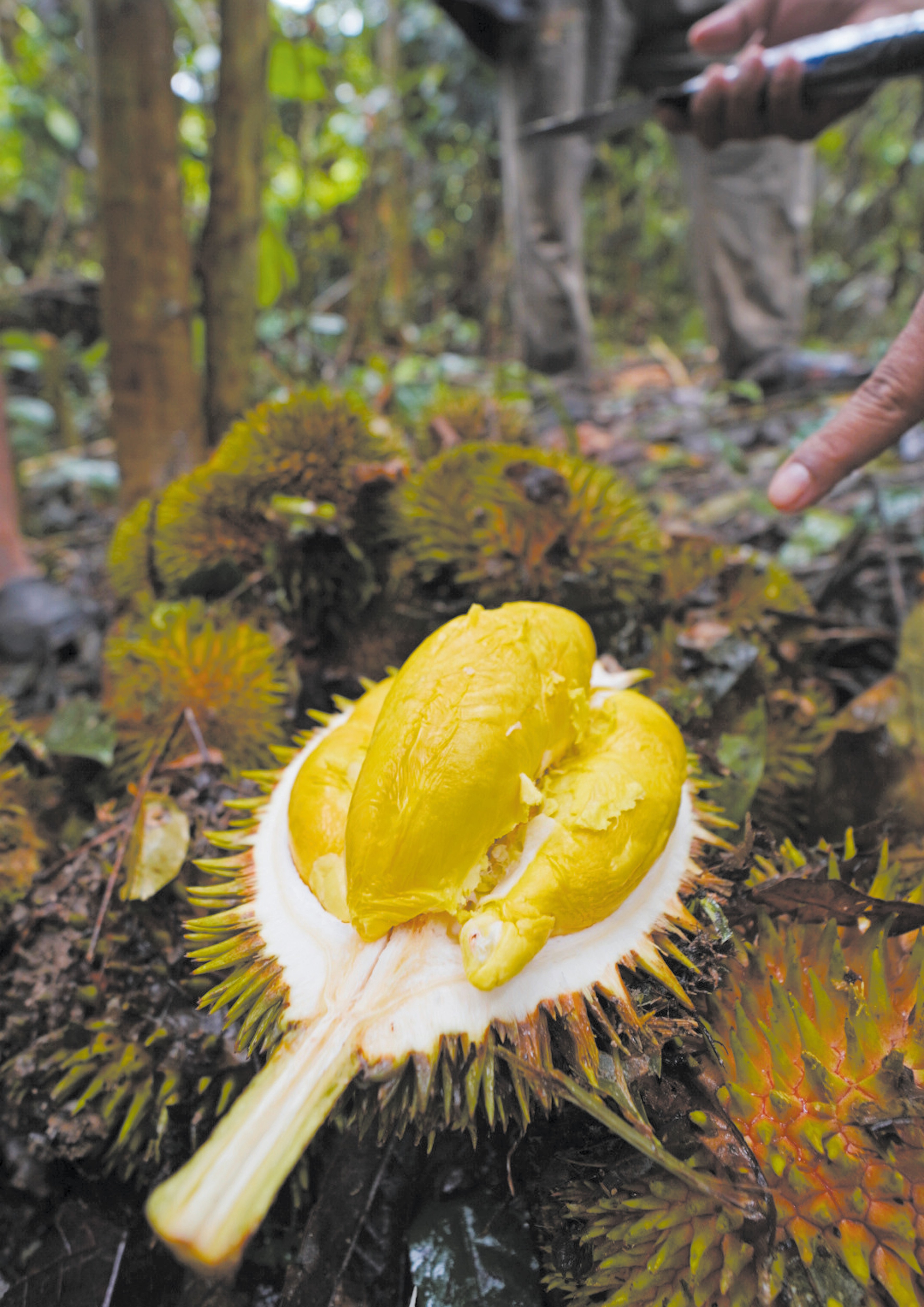 Sebaik melangkah masuk ke dusun, pemandangan di hadapan mata cukup untuk menimbulkan rasa kagum dalam diri mana-mana pencinta tumbuhan. Di tengah dusun itu, tersergam empat pokok durian kampung yang besar, dengan akar yang berselirat dan kanopi daun yang melitupi cahaya matahari and langit. Tetapi watak utama pada hari ini adalah pokok yang paling megah antara kesemuanya.