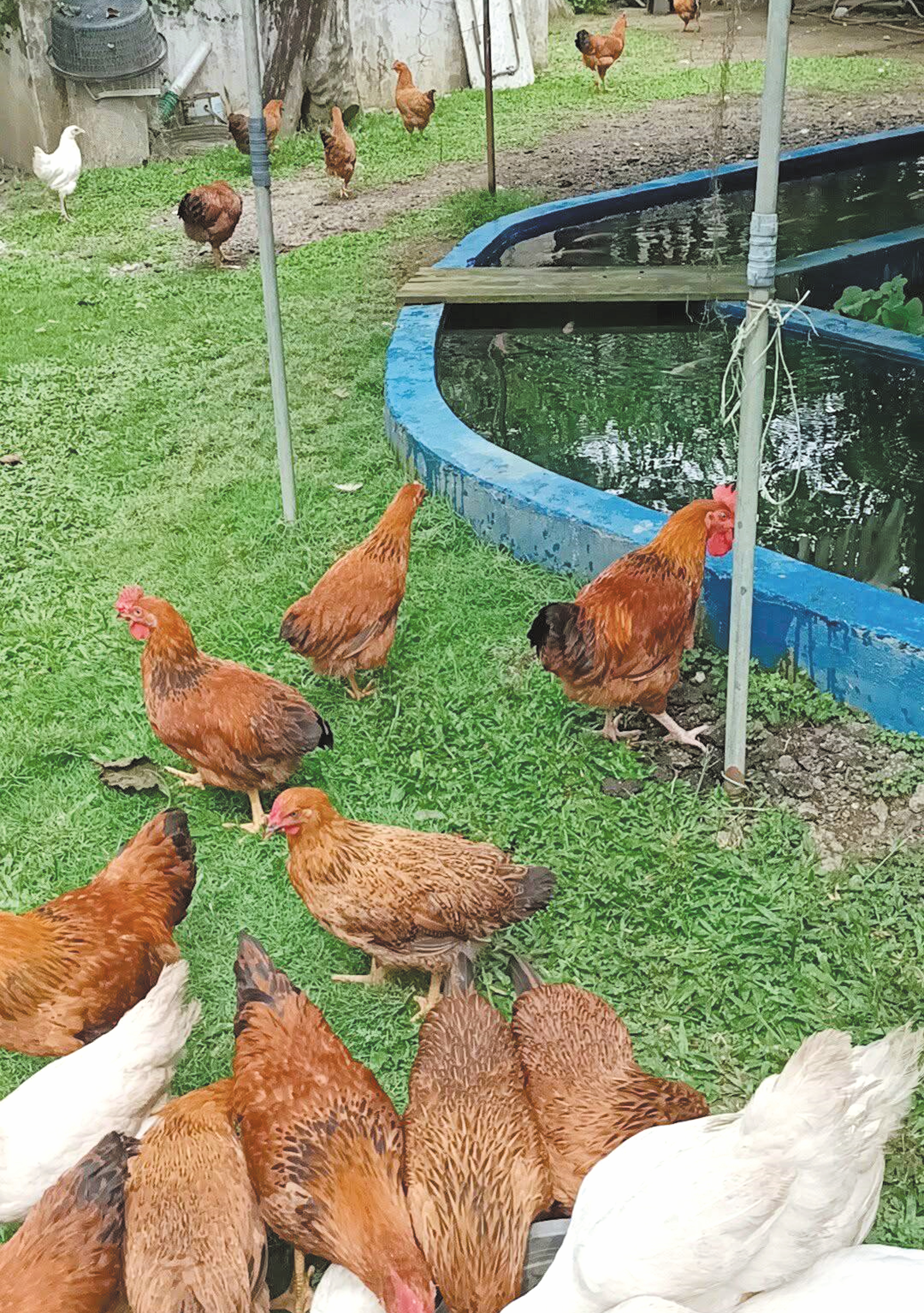 Azolla boleh dibiakkan dalam terusan atau kolam ternakan ikan, jagung jenis keras (pulut) boleh ditanam dalam kawasan kecil hingga 6 pusingan setahun tanpa mengira cuaca. Ubi kayu boleh ditanam di perimeter kebun sebagai pagar tanpa penjagaan rumit, selain daunnya juga boleh dimakan oleh ayam.