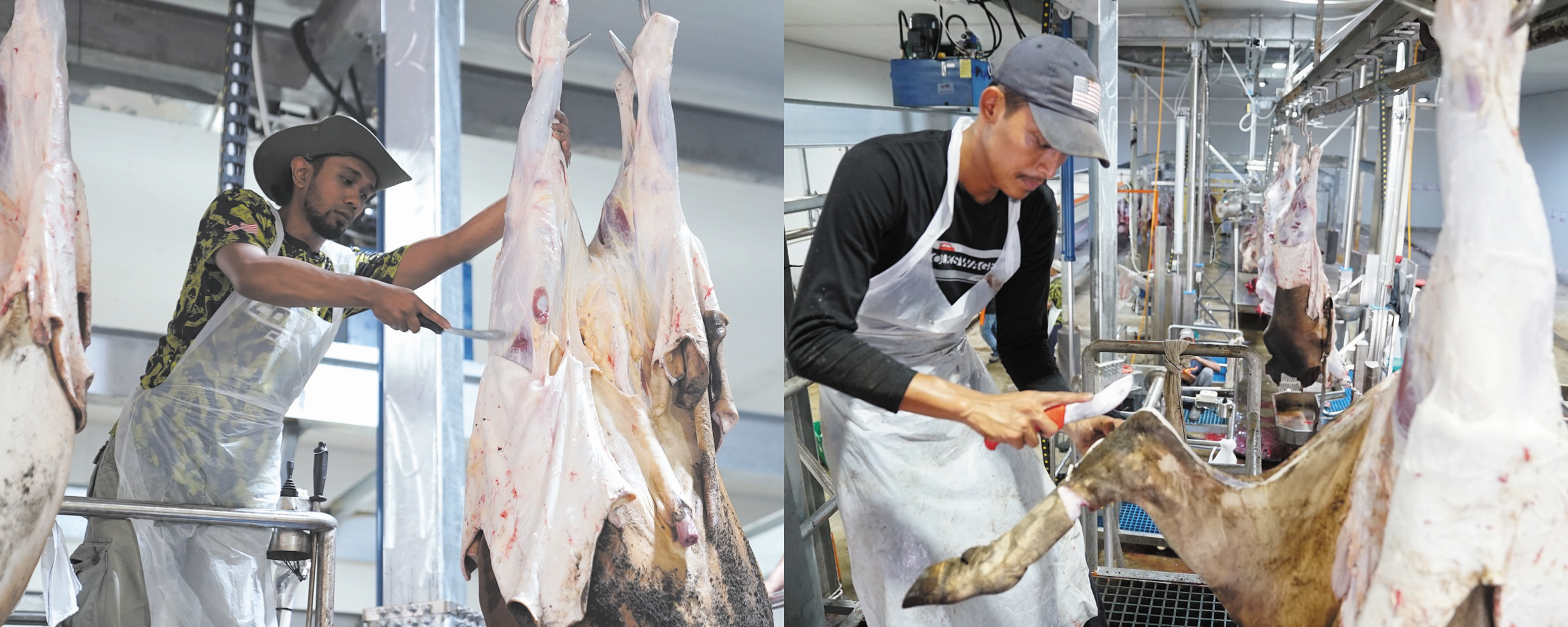 Proses penyembelihan dan penyediaan daging segar dilakukan di Pusat Penyembelihan berhawa dingin di Colla Cattle Farm, Kuala Selangor oleh kakitangan bertauliah. (Foto: Colla Cattle Farming facebook)