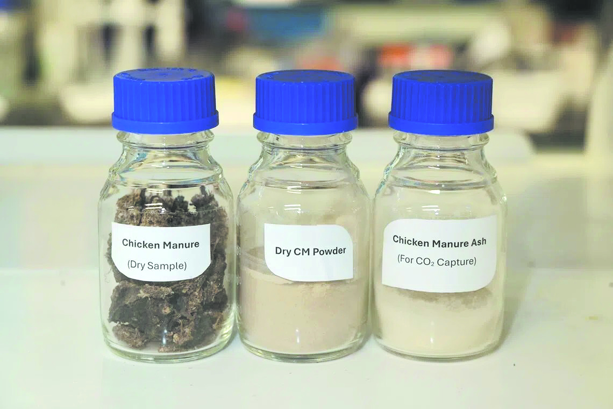 Penyelidik Kanan Chen Weiben pula menegaskan bahawa mengekalkan kandungan kalsium yang mencukupi dalam najis ayam adalah kunci untuk memastikan kecekapan penangkapan karbon.