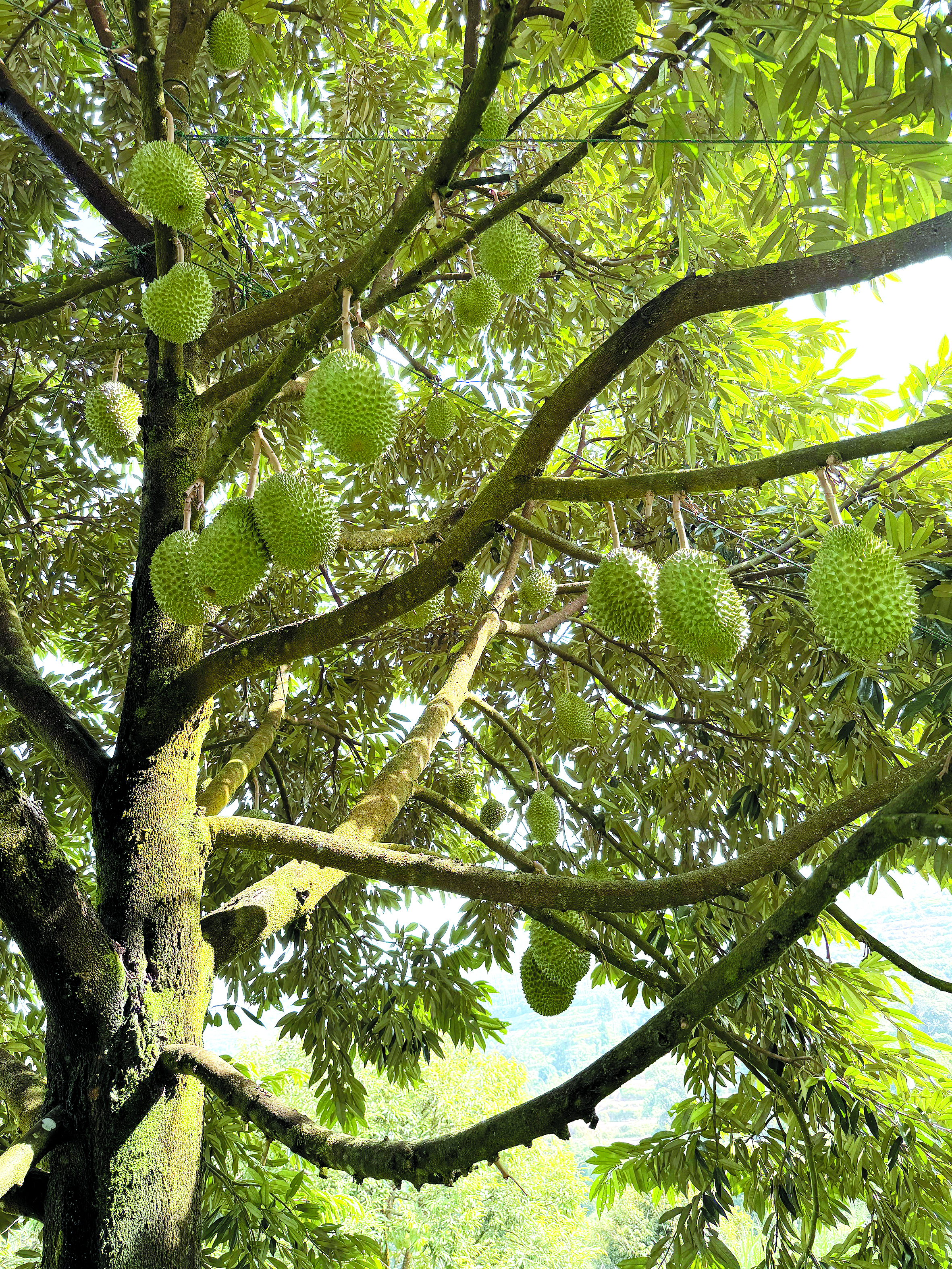 Keadaan pokok Musang King yang berumur 6 tahun yang sedang berbuah.