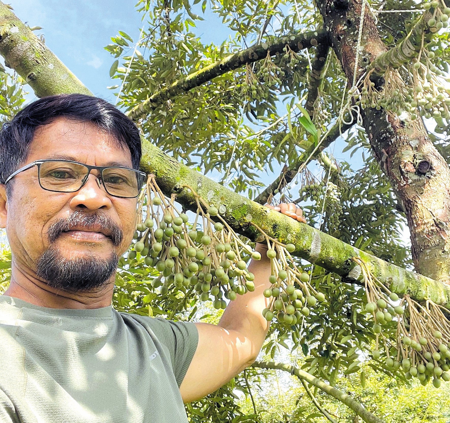 Senyuman En.Rohaimin terukir bersama pokoknya yang sedang berbunga lebat.