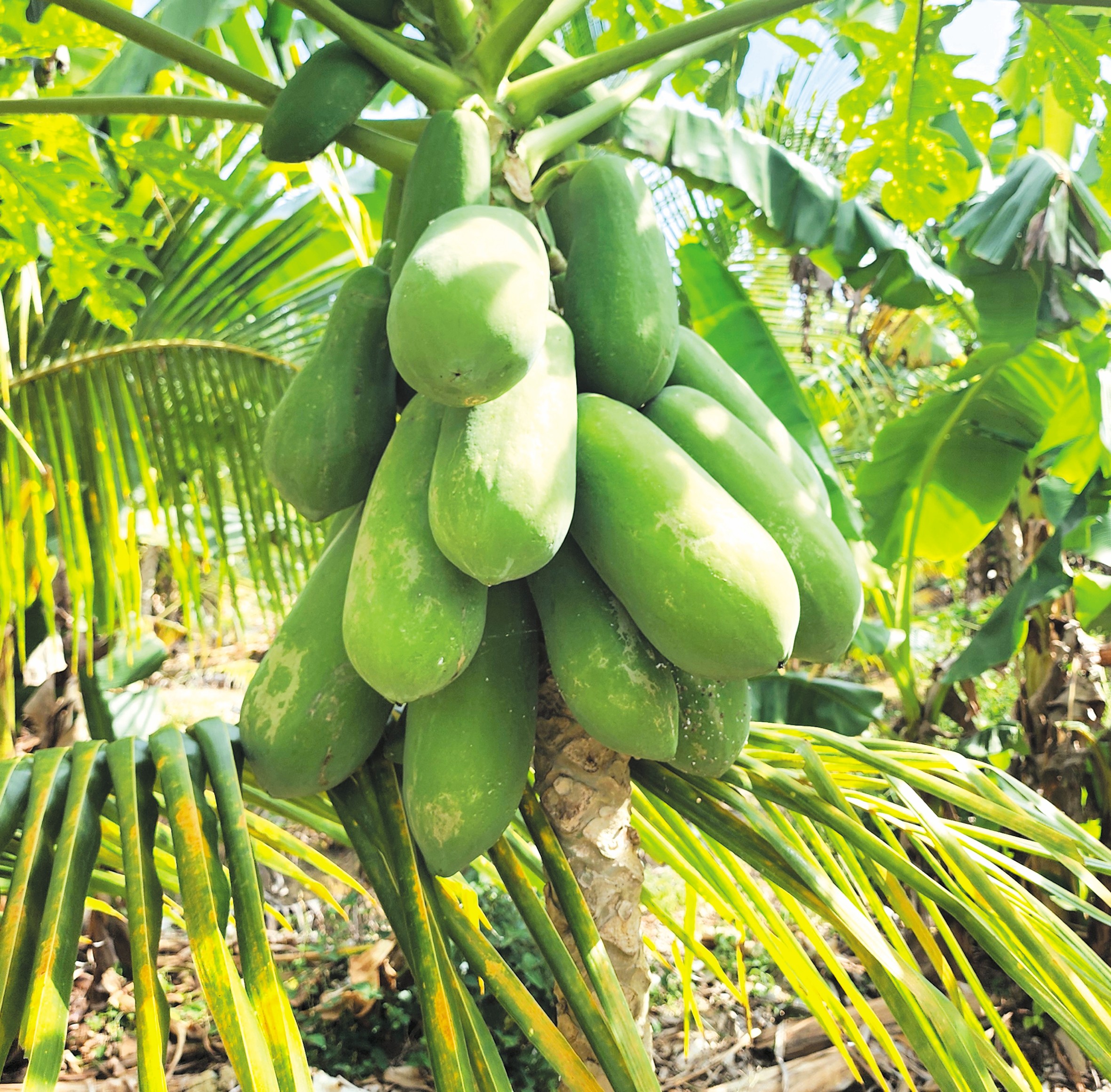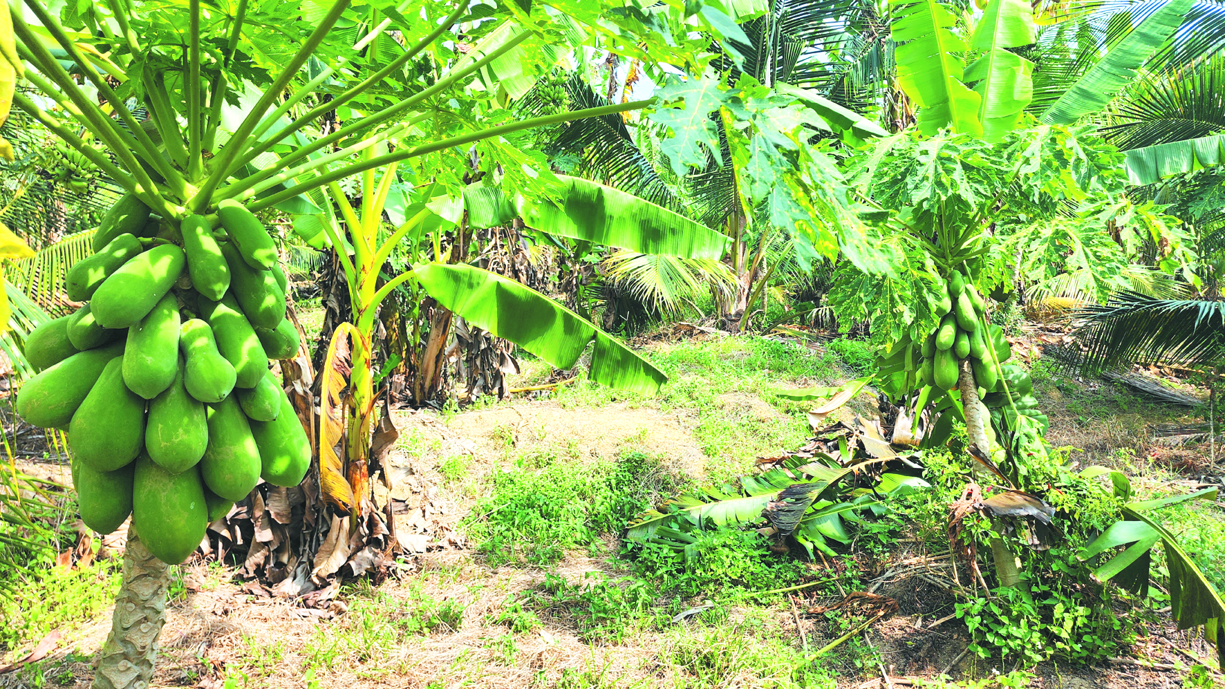 Walaupun ditanam sebagai tanaman selang, pertumbuhan betik tidak terjejas malah menunjukkan daun yang rimbun dan hasil buah yang banyak.