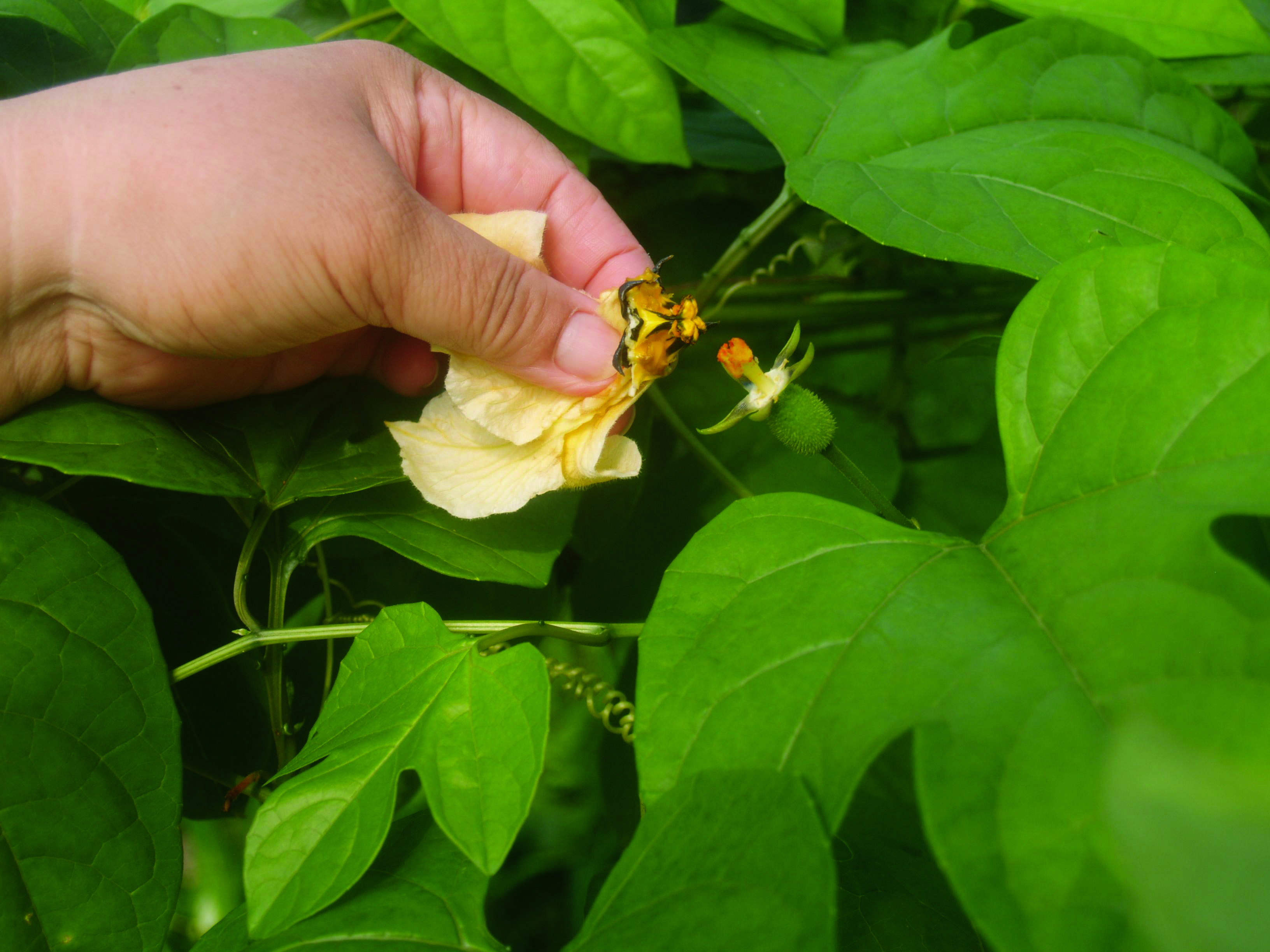Sapukan debunga dari bunga jantan ke kepala putik bunga betina, dan keesokan harinya ia mula membesar, lalu menjadi buah.