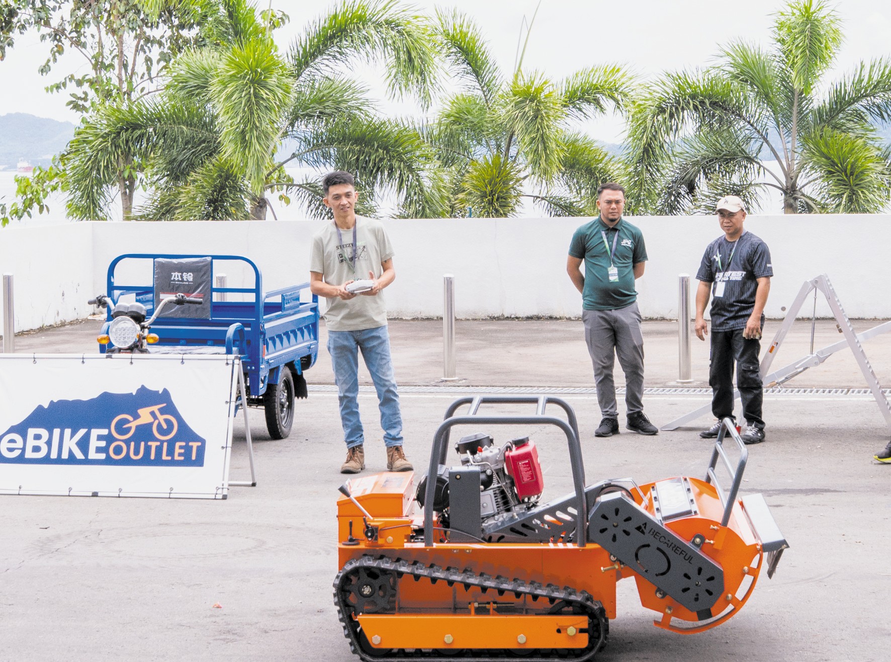 Peralatan pengangkutan berkaitan pertanian dipamerkan di luar dewan, menarik perhatian pengunjung.