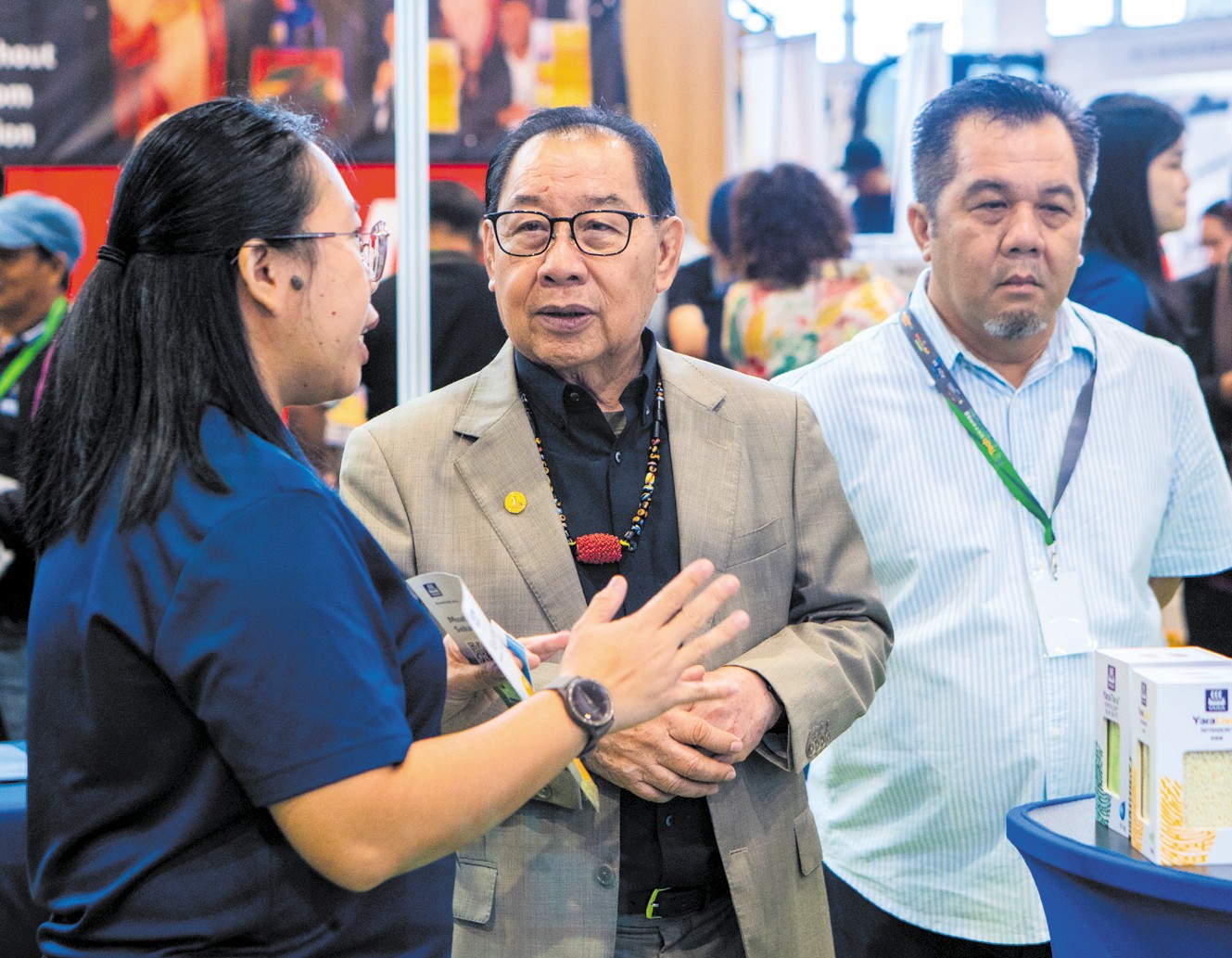 Jeffrey Kitingan (tengah) berinteraksi dengan peserta pameran mengenai trend baharu teknologi pertanian.
