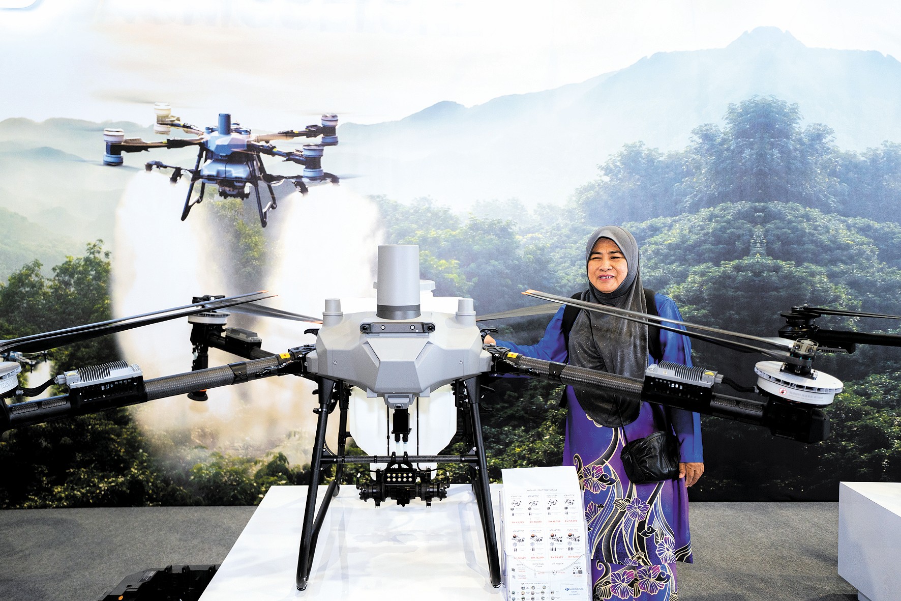 Orang ramai mempelajari tentang operasi drone dalam pengurusan pertanian.